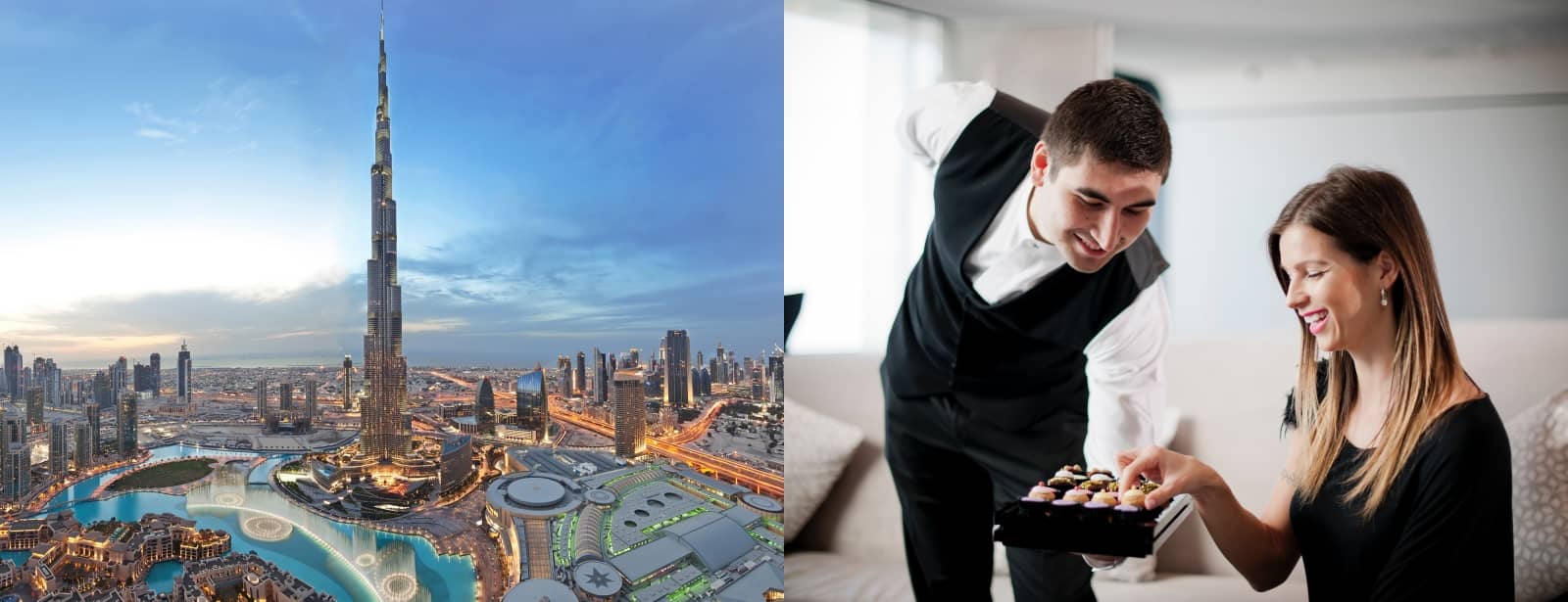 It’s time to take your experiences to the next level and visit the highest building in the world. Burj Khalifa with unbeatable views and record-breaking heights awaits! Choose your experience and head towards cloud umber nine. Get ready for the ultimate experience at the world-renowned Burj Khalifa. Take a personalized tour, guided by a guest ambassador, and step out onto the world’s highest observation deck with an outdoor terrace at an astonishing 555 meters. Sip on signature refreshments at the SKY lounge and explore Dubai’s most famous landmarks with a unique interactive experience that uses motion sensors. Venture to levels 125 and 124 and be amazed by the world’s fastest double-deck elevators cruising at 10m/s. Take a closer look at the world below through high-powered telescopes and step out onto the public outdoor observation terrace overlooking the ever-growing skyline. At 456 meters, Level 125 offers a spacious deck tastefully decorated with Arabic mashrabiya for stunning 360-degree views. Get ready to witness the city like never before with Dubai – A Falcon’s Eye View, taking you on an incredible journey over the city. Don’t miss the truly mesmerizing Arabian sunset, witness it with prime time tickets that allow you to see the sun setting over the beautiful city. It’s time to take your experiences to the next level and visit the highest building in the world. Burj Khalifa with unbeatable views and record-breaking heights awaits! Choose your experience and head towards cloud umber nine.