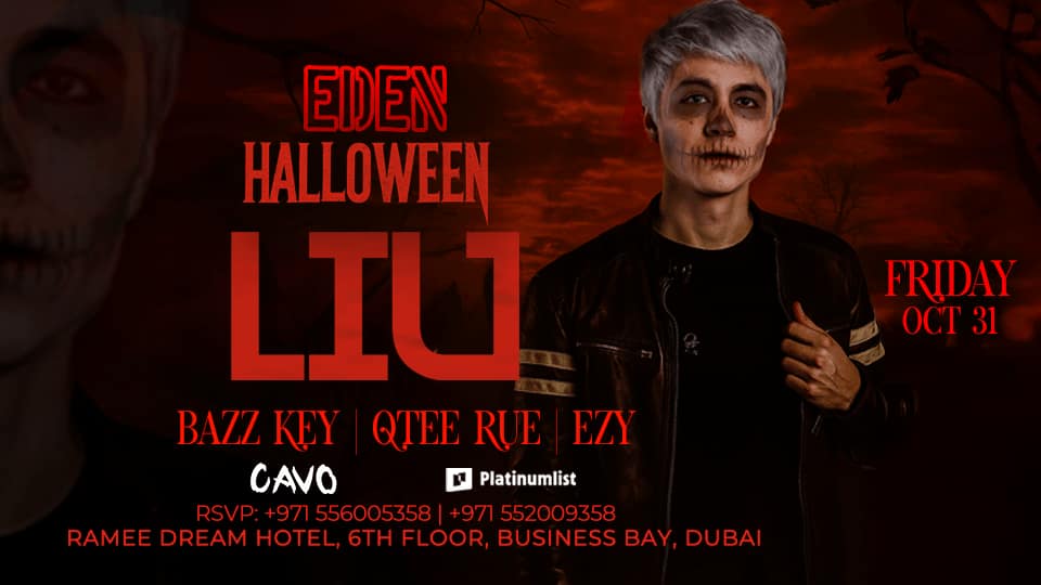 – Halloween at Cavo presents LIU Get ready for a spine-chilling night full of beats, thrills, and electrifying vibes as Cavo transforms into the ultimate haunted playground this Halloween! On Friday, October 31st, international sensation LIU will take over the decks, bringing his signature high-energy sound to keep you dancing till dawn. Joining him will be Bazz Key, Qtee Rue, and Ezy, making it a powerhouse lineup you don’t want to miss. Expect haunting décor, spooky surprises, and an atmosphere like no other at the stunning Ramee Dream Hotel, 6th Floor, Business Bay, Dubai. Eden Presents LIU Live in Dubai at Cavo Restaurant, Dubai, United Arab Emirates events Nightlife Cavo Liu