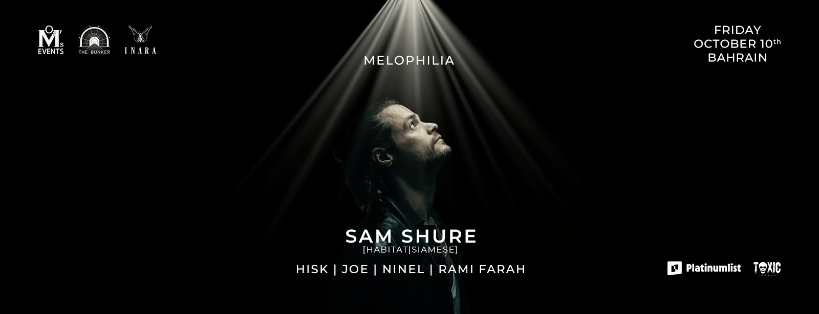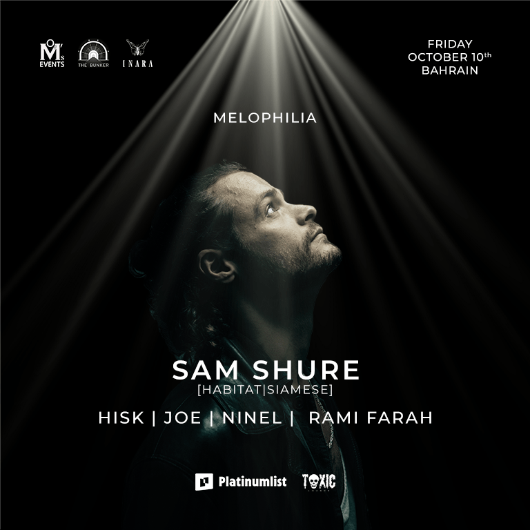 Melophilia returns with another unforgettable night, this time featuring the internationally acclaimed artist Sam Shure (Habitat | Siamese). Get ready for a deep, hypnotic journey of sound supported by Bahrain’s underground favourites HISK, Joe, and Ninel. This is more than just a party—it’s an experience crafted by The Bunker and OMS Events. Melophilia returns with another unforgettable night, this time featuring the internationally acclaimed artist Sam Shure (Habitat | Siamese). Get ready for a deep, hypnotic journey of sound supported by Bahrain’s underground favourites HISK, Joe, and Ninel. This is more than just a party—it’s an experience crafted by The Bunker and OMS Events. Melophilia 3.0 at Toxic Club at 6J96+63 Manama events Nightlife Toxic, The Mark Hotel Juffair Sam Shure