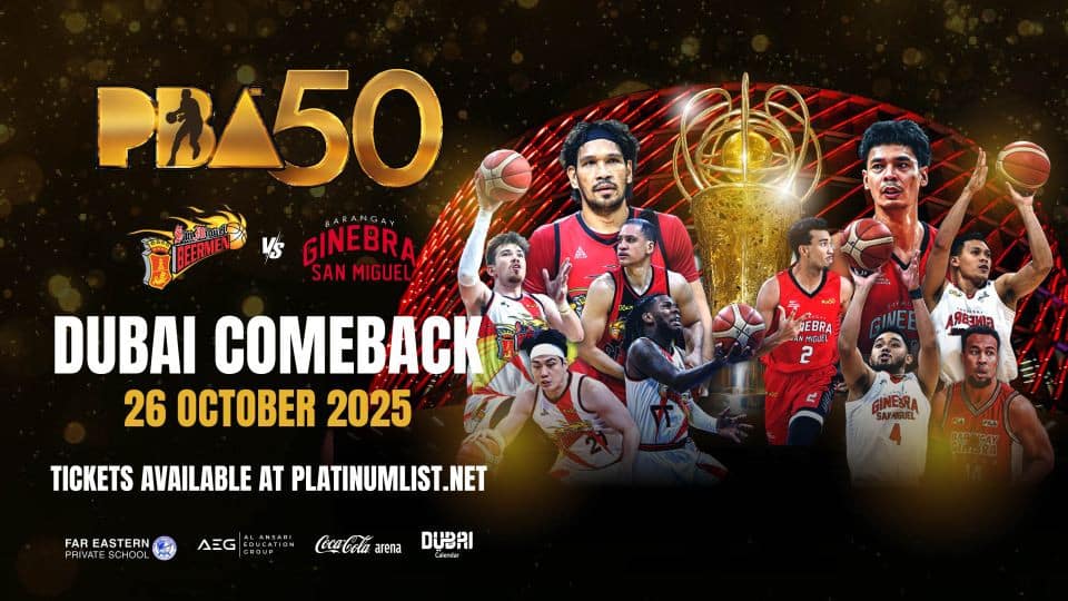 – Dubai, get ready for a basketball event like no other! On October 26, 2025, the Philippine Basketball Association (PBA) celebrates its 50th season with a legendary showdown at Coca-Cola Arena. Watch San Miguel Beermen and Barangay Ginebra San Miguel go head-to-head in a thrilling clash filled with high-flying dunks, fast breaks, and unstoppable energy. This isn’t just a game it’s an experience that brings the excitement of Filipino basketball straight to Dubai. Proudly brought to Dubai by Far Eastern Private School (FEPS) and Al Ansari Education Group, this world-class sporting spectacle unites fans of all ages and backgrounds. From the opening tip-off to the final buzzer, expect heart-pounding moments, incredible skills, and the passionate cheers of supporters creating an atmosphere that only the PBA can deliver. Whether you’re a lifelong fan or discovering the PBA for the first time, this night promises adrenaline, entertainment, and unforgettable memories. Don’t miss your chance to be part of history! Secure your tickets today and join us for a night of legendary rivalries, electric atmosphere, and unforgettable basketball action. PBA 50 – Dubai Comeback at Coca-Cola Arena, Dubai, United Arab Emirates events Sports Events Coca-Cola Arena