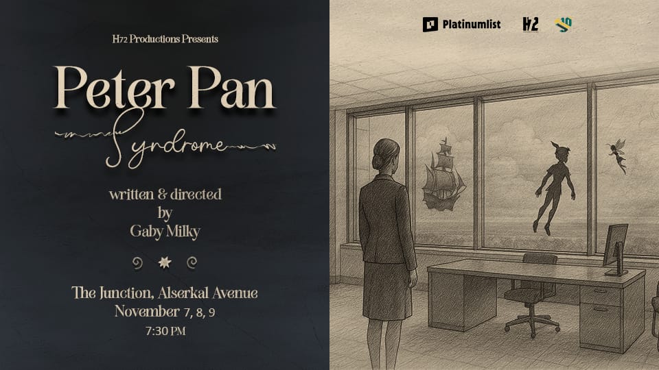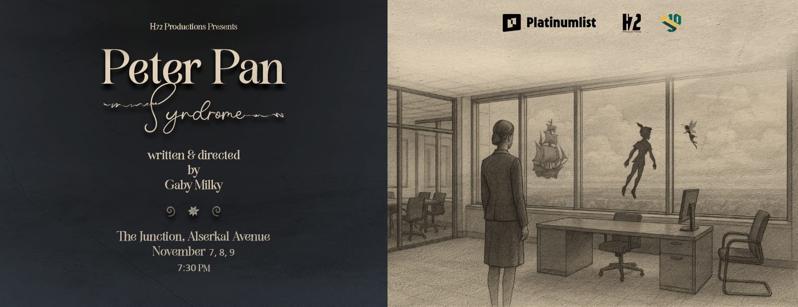– How to get there: By car: Al Serkal Avenue is located in the Al Quoz industrial area of Dubai, and it can be easily reached by car. If you’re coming from Sheikh Zayed Road, take the Al Manara exit (exit 43) and turn right onto Al Manara Street. Continue straight until you reach the first intersection and turn right onto 8th Street. Keep driving straight until you reach the roundabout, take the second exit, and continue onto 17th Street. You’ll find Al Serkal Avenue on your left. By public transportation: To reach Al Serkal Avenue by metro, take the Dubai Metro Red Line and get off at the Noor Bank Station. From there, you can take a taxi or a bus to Al Serkal Avenue, which is just a short drive away. By taxi: You can also take a taxi to Al Serkal Avenue from anywhere in Dubai. It’s a famous destination and most drivers would be familiar with its location. What if Peter Pan, the Lost Boys, and Captain Hook weren’t in Neverland at all… but stuck in a publishing office that makes children’s books At Neverland Publishing, deadlines are chaos, the creatives are barely holding it together, and Managing Editor James Hook has some terrible news: Upper Management has sent in Sylvia, a brand-new AI robot, to “enhance workflow.” Which really means one thing: someone’s getting fired As panic spreads through the team, Peter Pan rallies the creatives to save their jobs, their stories, and the magic of never growing up. Meanwhile, Hook dreams of a promotion, Odile pulls the strings, and Sylvia… well, she’s still updating. A satirical comedy… A fairytale for grownups (and yes, kids too—of course they can watch, we’re not that cruel). Note: Because of the storyline (and definitely not budget cuts), Peter Pan flies… metaphorically. Funny. Culty. Relatable. From award-winning writer/director Gaby Milky and an award-winning cast. Produced by: H72 Productions Peter Pan Syndrome at The Junction in Dubai at Unit H72, Alserkal Avenue, 17 St. Corner 8 St, 1 17th St, القوز, دبي, United Arab Emirates events Shows and Theatrical Plays The Junction