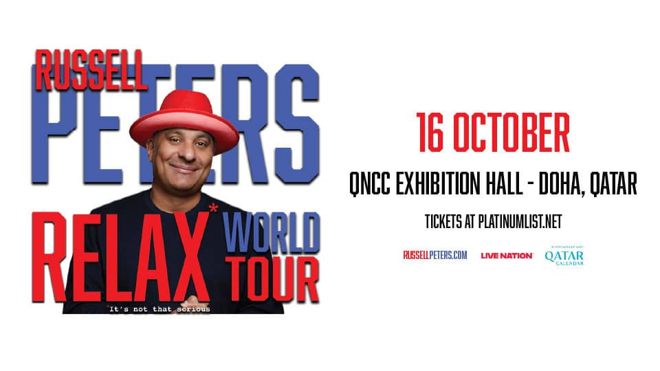 Legendary Canadian comedian, actor and producer Russell Peters is bringing his brand-new stand-up comedy show “RELAX” to Qatar and sharing hilarious personal stories about getting married (again), parenthood and millennials with his signature lightning-fast audience interaction!