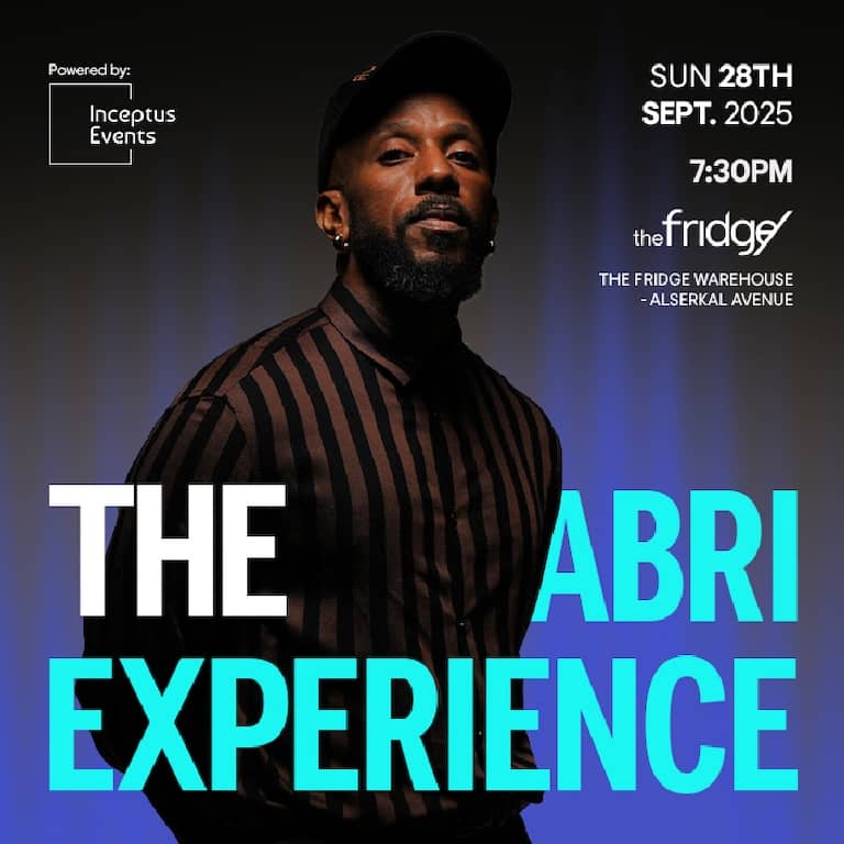 – Join us for a one-night-only, genre-defying live concert featuring the UAE’s soul pioneer Abri, as he takes the stage with a powerhouse band for an unforgettable evening of music, storytelling, and deep connection. Set in the raw, vibrant space of The Fridge, this is more than just a performance; it’s a curated experience of soul, funk, and groove that fuses intimacy with sonic excellence. From the moment the lights dim, you’ll be pulled into a musical journey – bold, spirited, and beautifully crafted. Whether you’re a long-time Abri fan or new to his sound, this show is your chance to witness the soul of Dubai’s music scene in its purest form. The Abri Experience at The Fridge in Dubai at #5 Alserkal Avenue, Al Quoz 1 Dubai, Dubai, United Arab Emirates events Concerts The Fridge Warehouse, Alserkal Avenue