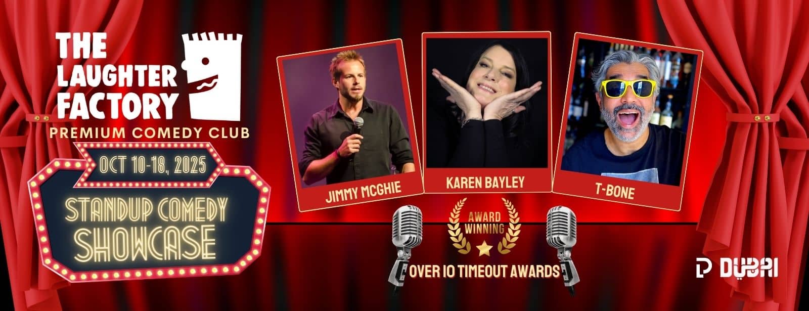 – The Laughter Factory Premium Comedy Club – October 2025 Tour Your Monthly Dose of Side-Splitting, Arena-Quality Comedy in an Intimate Setting Get ready for a laughter marathon this October as The Laughter Factory brings you an outrageously funny, jam-packed bill of world-class stand-up. When Graham Norton or Loose Women need their TV audiences whipped into fits of hysterics, there’s one man they call first — Jimmy McGhie. Described by The Scotsman as “a brilliant talent”, Jimmy is a must-see star of the Edinburgh Fringe, Sydney, Melbourne, and New Zealand Comedy Festivals. Joining him is multi-award-winning comedy powerhouse Karen Bayley. The BBC raved, “I saw her recently and she blew my socks off… clever, brilliant, and she’s gonna be huge.” The first- ever female winner of The Comedy Store’s King Gong Award, Karen’s razor-sharp wit, infectious giggle, and killer one-liners make her a comedic force you won’t forget. Completing this killer line-up is Dubai-based comedic firecracker Tabarak — winner of the Short & Sweet Comedy Festival, España Comedy Games, and Beat The Camel. Born in Karachi, armed with a fiercely original perspective, and never afraid to tell it like it is, Tabarak delivers laughs with high-octane energy and unfiltered charm. Come and experience the world’s best comedy in the UAE’s most intimate venues — where you’re close enough to feel every punchline land. The Laughter Factory October 2025 in Dubai, Abu Dhabi and Rak at Palm Jumeirah, Palm, Jumeirah Rd, The Palm Jumeirah, Dubai, United Arab Emirates events Comedy Events Dukes The Palm, a Royal Hideaway Hotel Jimmy McGhie