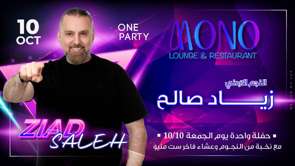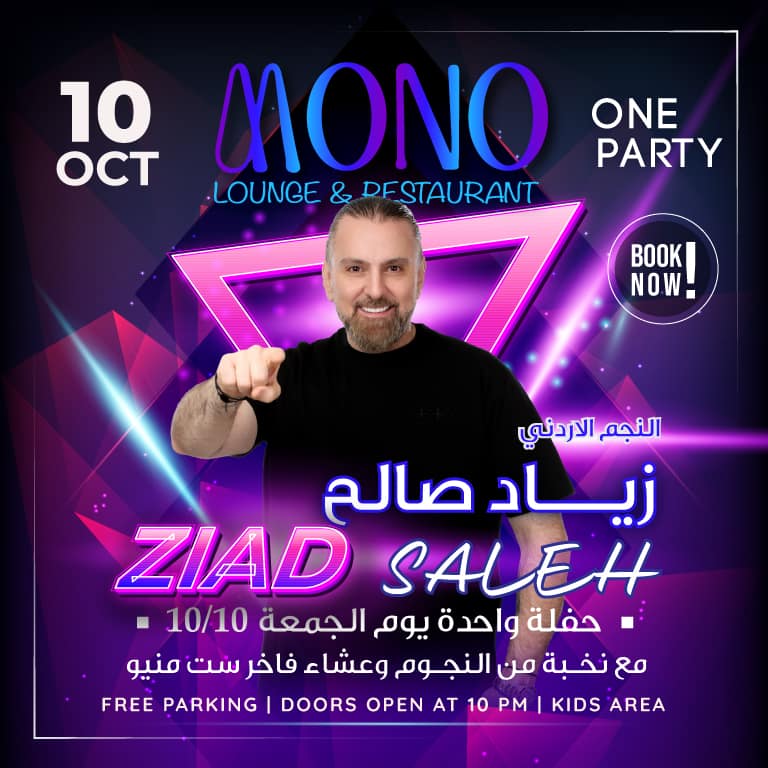 Mono Restaurant is hosting a concert featuring Arab artist ZIAD SALEH, accompanied by a group of stars, alongside the most delicious Lebanese cuisine. Mono Restaurant is hosting a concert featuring Arab artist ZIAD SALEH, accompanied by a group of stars, alongside the most delicious Lebanese cuisine. Ziad Saleh Concert at Mono Lounge & Restaurant at Mono Restaurant & Cafe, Al Burhama, Bahrain events Concerts Mono Lounge and Restaurant